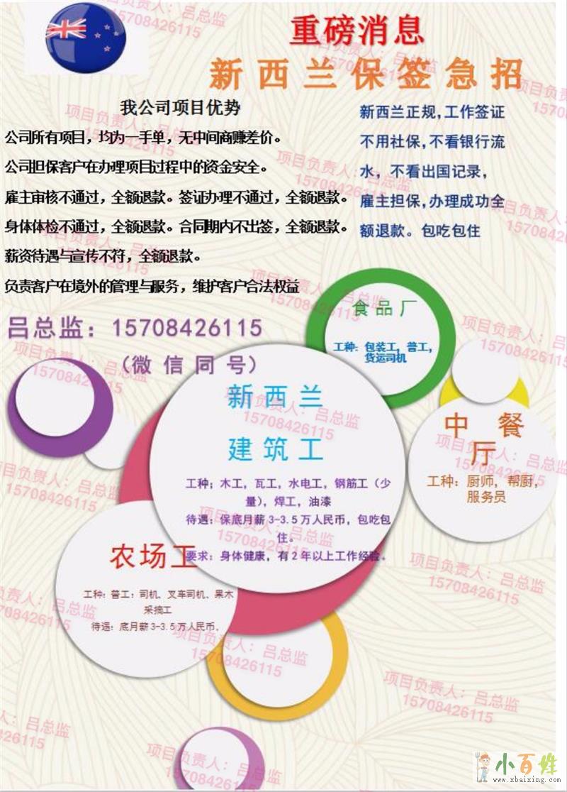 商务部资质国家备案/包吃包住/带薪年假选择我公司的优势:1.合法性:正规工作签证,合法的在国外并且享受当地人保险,旅游,工作,生活,而不需要胆战心惊的非法滞留打黑工。2.条件低:22-55周岁身体健康...