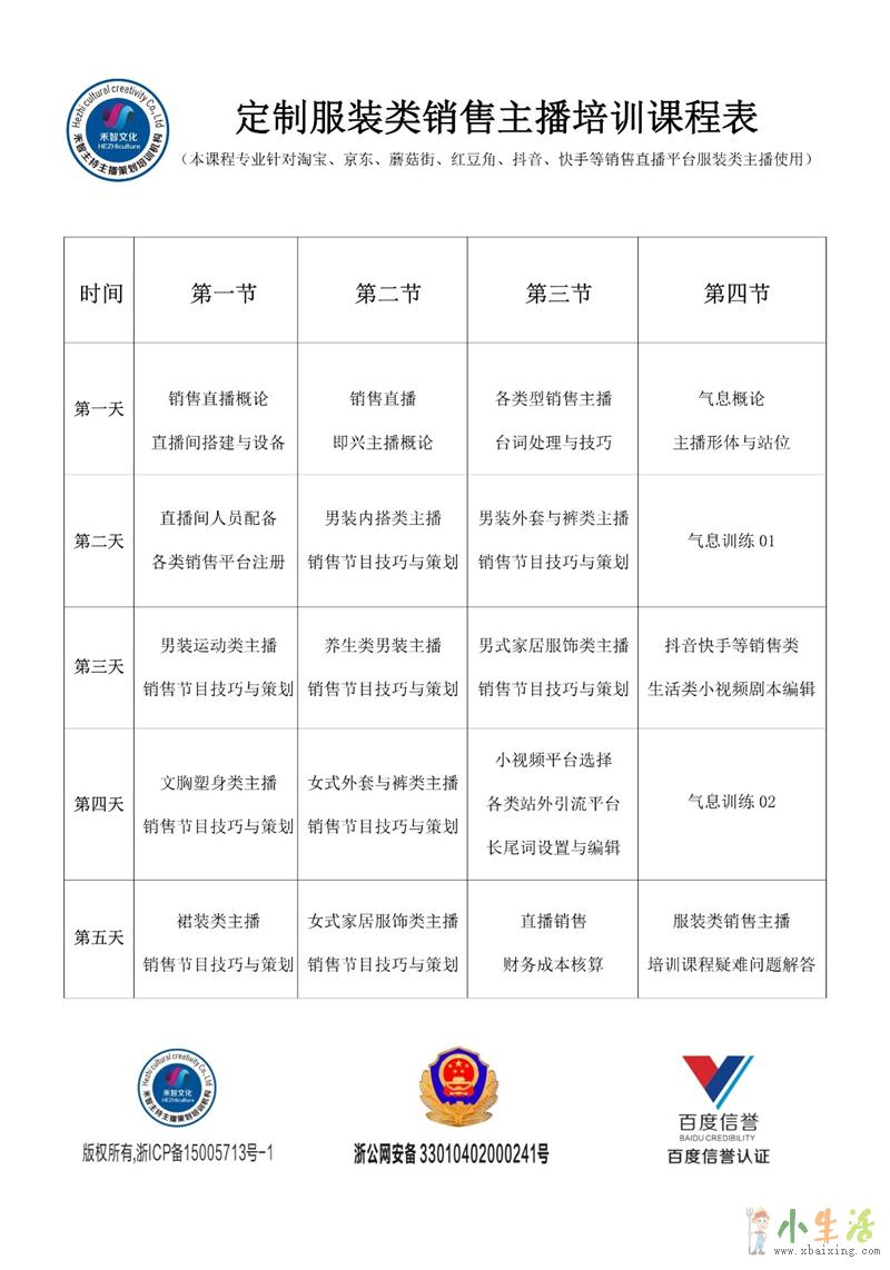 课程内容:气息发音,普通话调整,台词方法。销售节目策划(服装类、家居类、